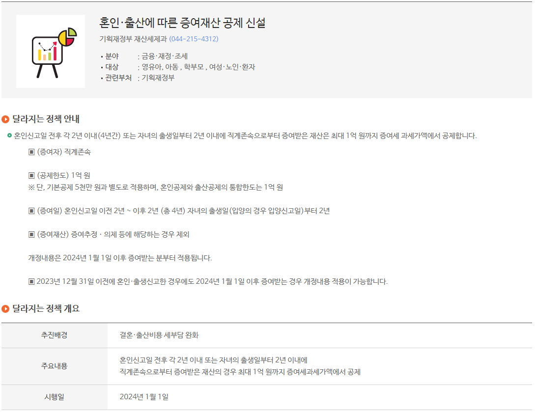 증여시기만 2024년 이후여야하는 것이므로, "과거에 혼인 혹은 출산을 했지만 아직 2년이 지나지 않았다" 이 상황에서 증여받는 것이라면 혼인·출산 증여재산공제를 받을 수 있습니다.