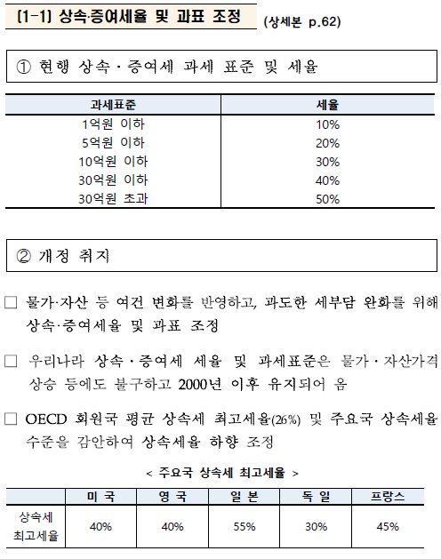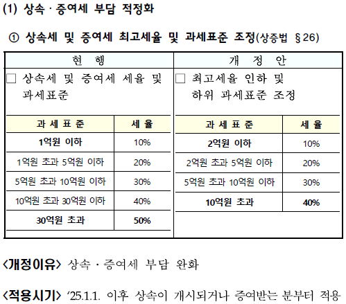 1) 상속세 및 증여세 최고세율 및 과세표준 조정(상증법 §26)