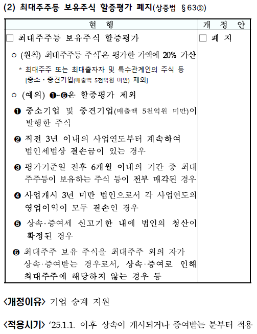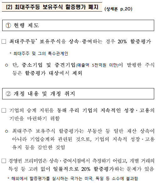 4) 최대주주등 보유주식 할증평가 폐지(상증법 §63③)