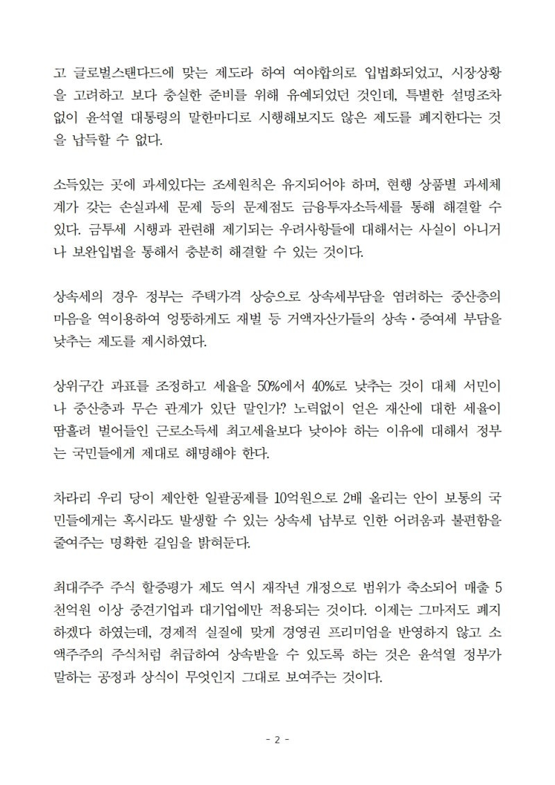 개정안 내용이 부자 감세에 해당한다는 입장입니다. 앞으로 국회에서 어떤 방향으로 합의가 될지.. 결과가 나온다면 다시 한번 포스팅하도록 하겠습니다.