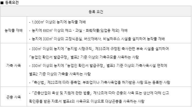 개편된 농지대장은 필지 기준으로 작성되는 서류이기 때문에 각 농지별로 개별 확인하여야합니다. 또한, 대상 농지의 면적요건이 없어졌기 때문에 모든 농지에 대해 등록이 가능합니다.