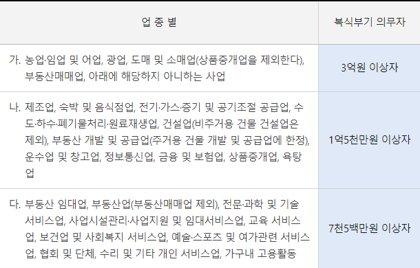 2. 「소득세법」 제24조 제1항에 따른 사업소득 총수입금액(농업ㆍ임업에서 발생하는 소득, 같은 법 제45조 제2항에 따른 부동산임대업에서 발생하는 소득과 같은 법 시행령 제9조에 따른 농가부업소득은 제외한다)이 같은 법 시행령 제208조 제5항 제2호 각 목의 금액 이상인 과세기간이 있는 경우