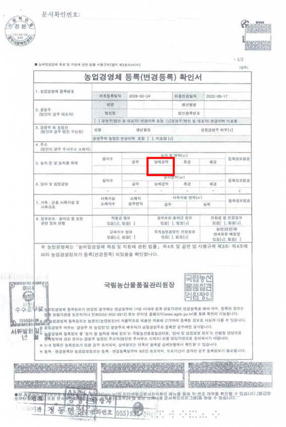 실제로는 전체 면적을 경작하고 있음에도 경영체등록확인서 상 휴·폐경 면적이 존재한다면, 면적 정정을 요청하실 것을 권해드립니다.