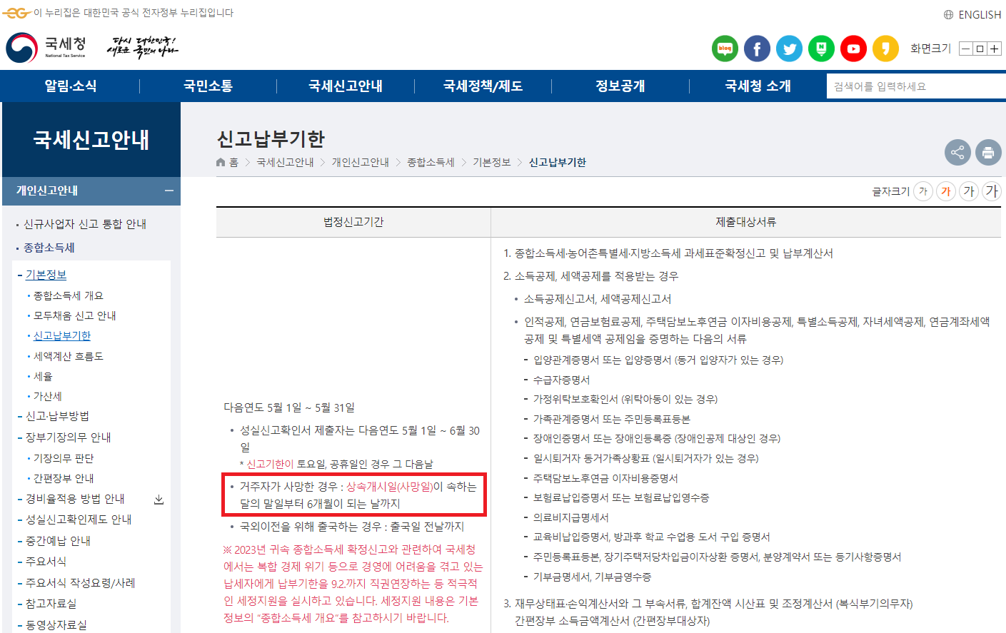 종합소득세 신고 전 사망 시 종합소득세 신고 기한은?