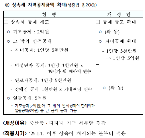 2) 상속세 자녀공제금액 확대(상증법 §20①)