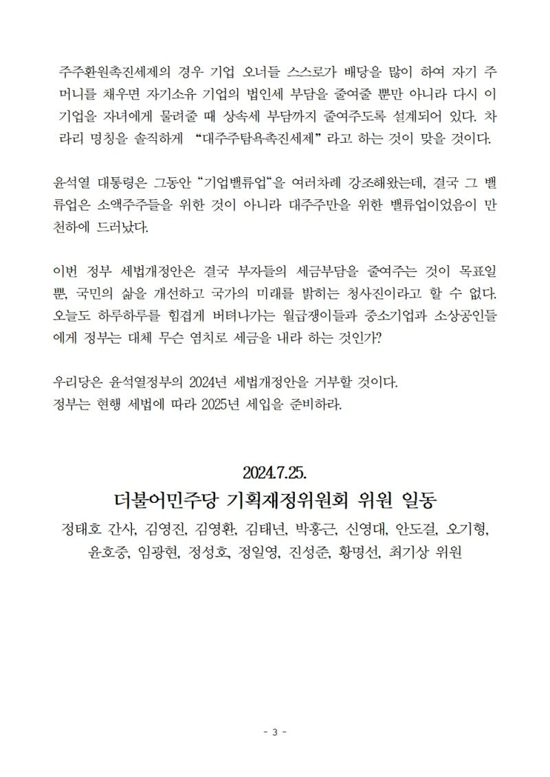 1) 민주당 기재위원 입장문